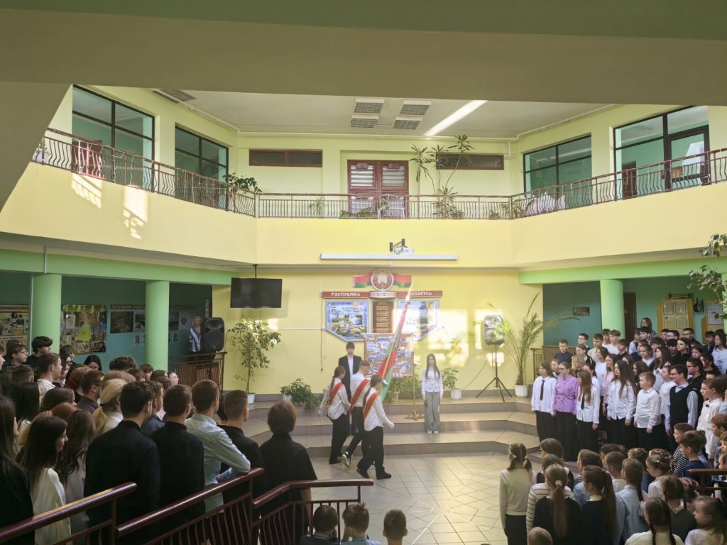 2 апреля в холле третьего этажа прошла торжественная линейка, посвящённая Дню единения народов Беларуси и России