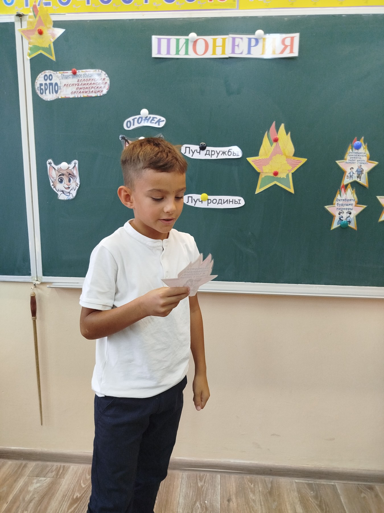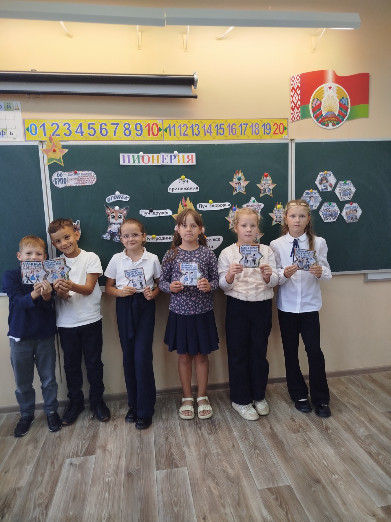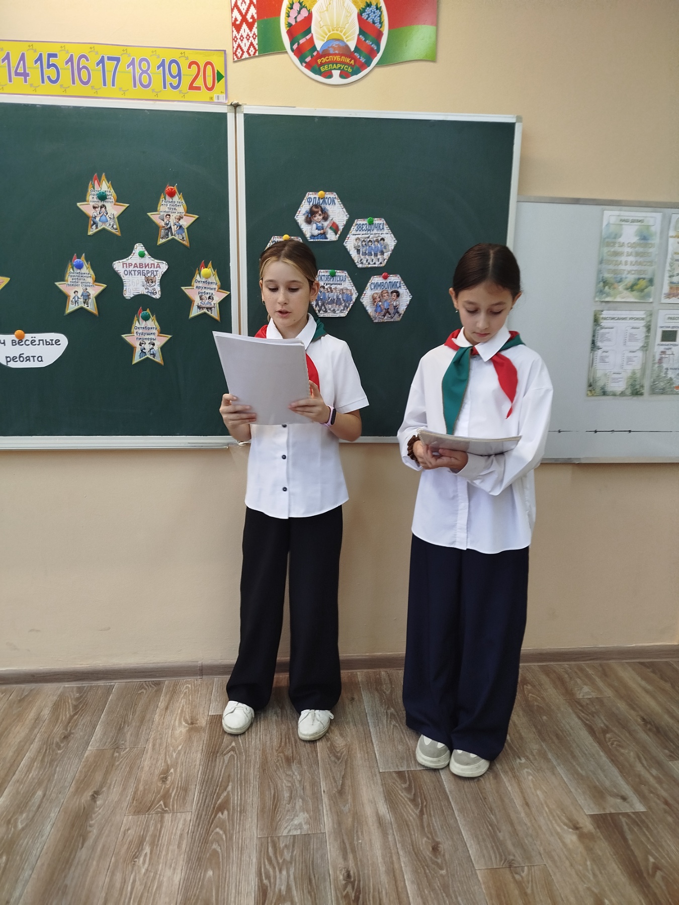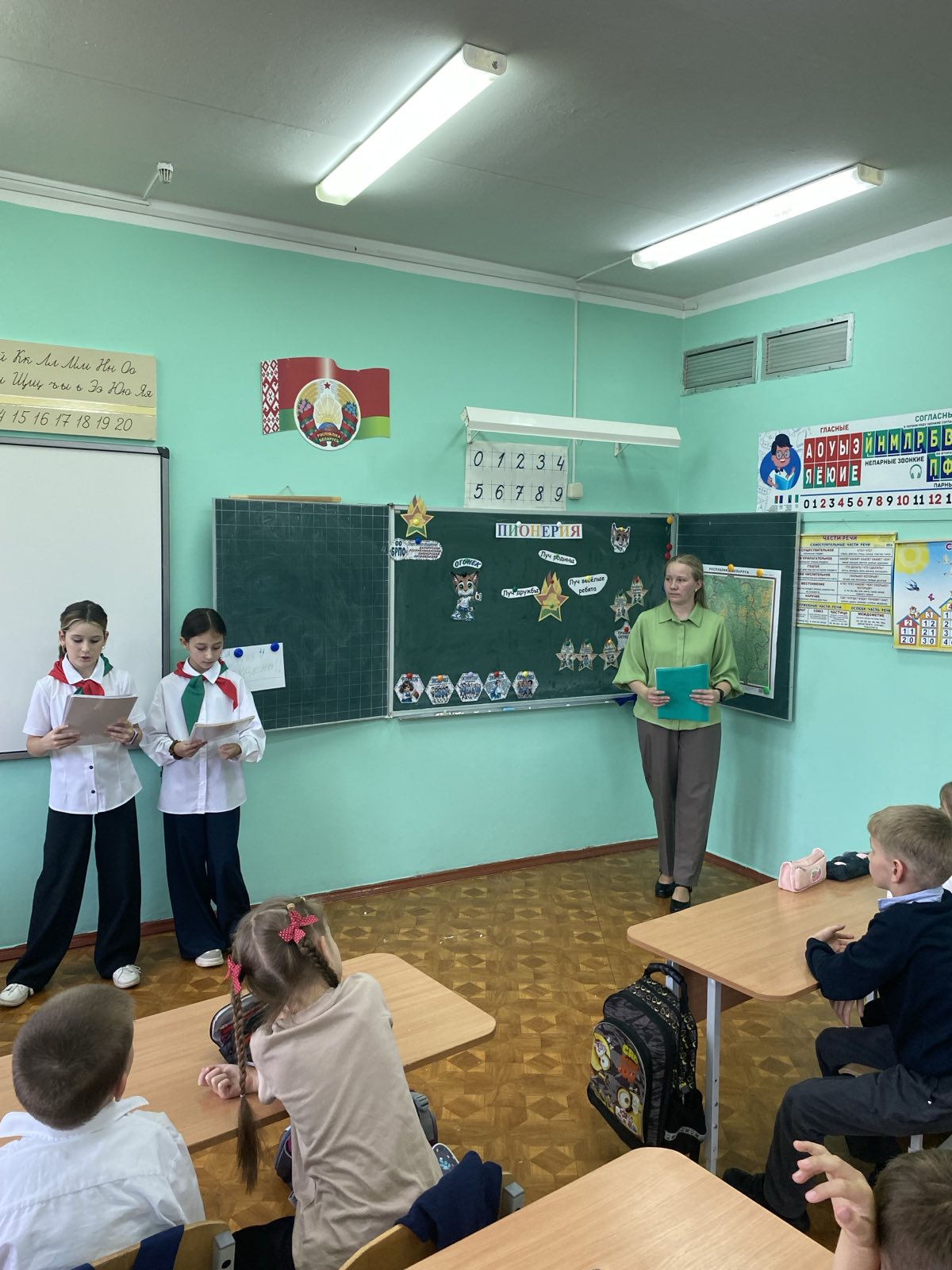 Октябрята — это первая ступень члена Белорусской республиканской пионерской организации. Учащиеся познакомились с легендой об октябрятах, совершили виртуальную экскурсию в историю детской общественной организации, изучили ее символику и узнали о происхождении и значении слова «октябрята». Активисты БРПО познакомили ребят с правилами октябрят.