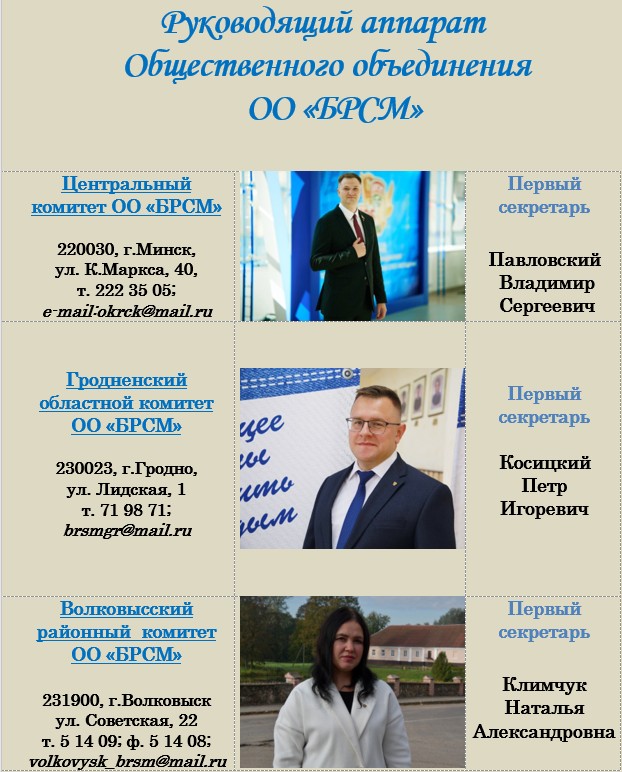 Руководящий аппарат Общественного объединения ОО «БРСМ»